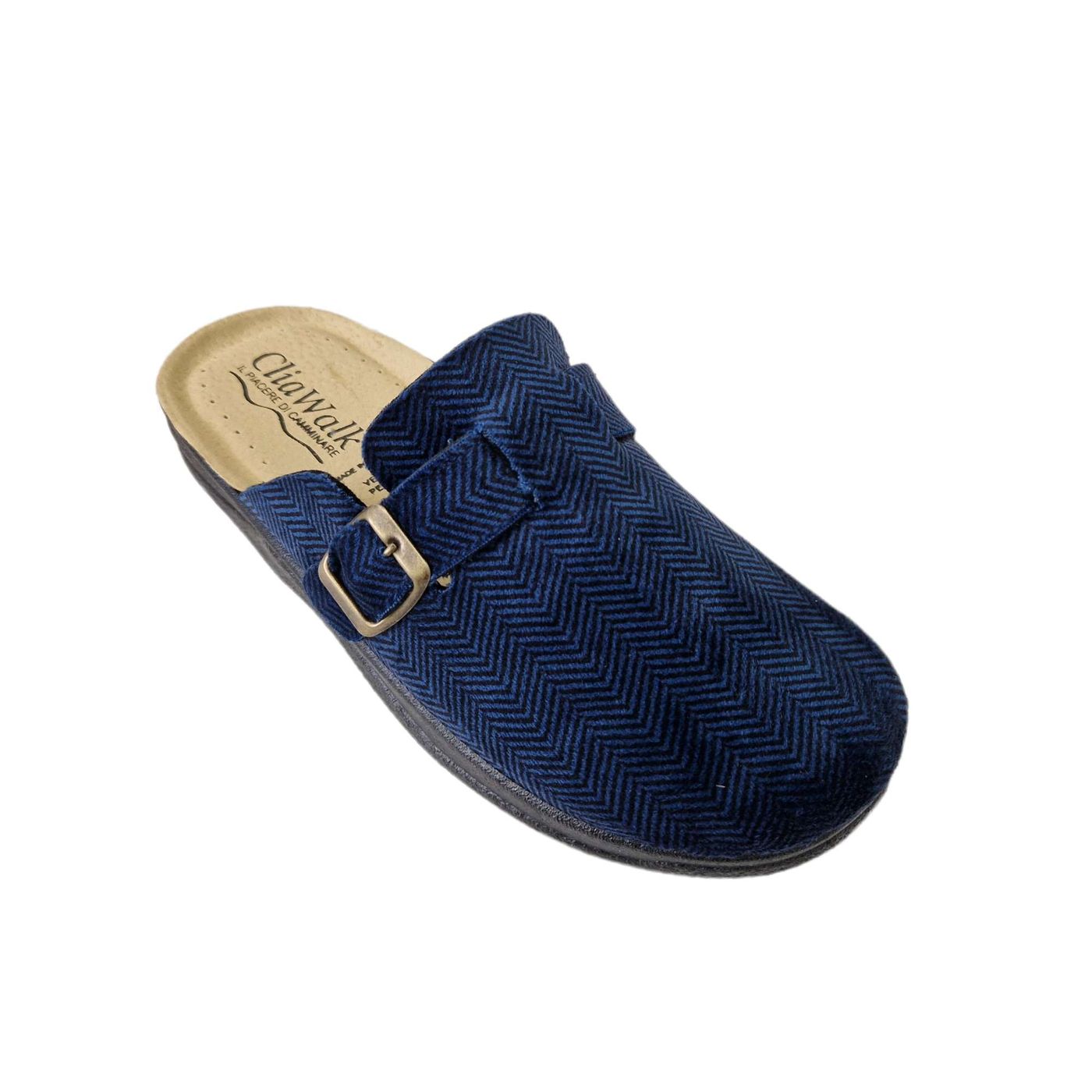 PANTOFOLA IN VELLUTO FODERATA IN PILE CON SOTTOPIEDE SOFT IN PELLE E FONDO IN GOMMA ANTISCIVOLO