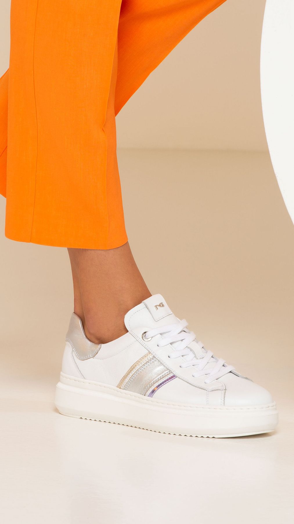 SNEAKERS IN PELLE CON PLANTARE ESTRAIBILE E FONDO IN GOMMA